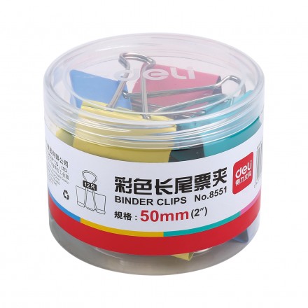 • 得力8551-1#彩色長尾票夾51mm(筒裝)(混)(12只/筒)
